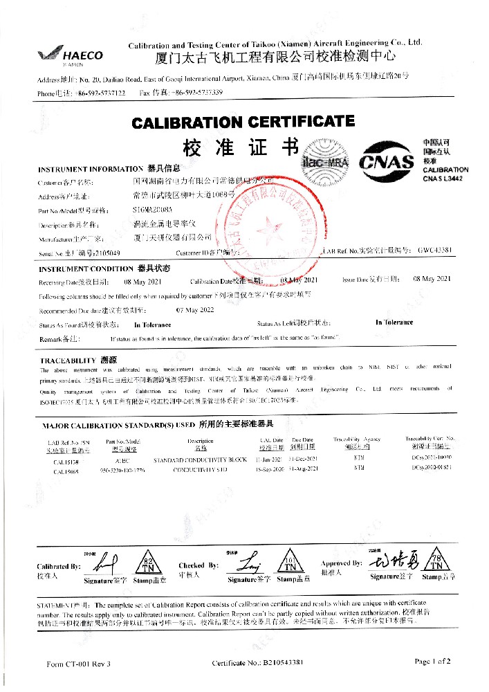 銅、鋁等金屬材料電導率值、電阻率值測量